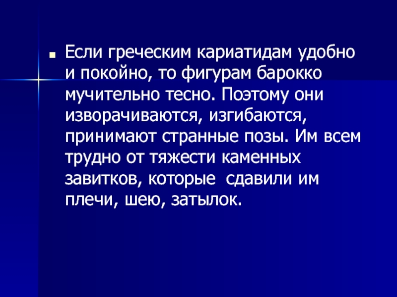 17. Греческим кариатидам удобно и покойно, а фигурам барокко мучительно тесно.