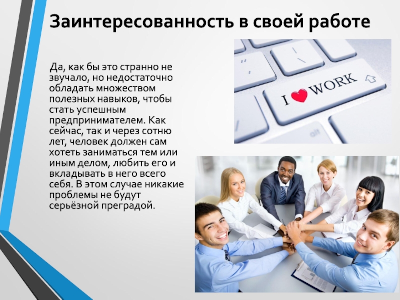 стать успешным предпринимателем. Как сейчас, так и через сотню лет, человек должен сам хотеть заниматься тем или иным делом, любить его и вкладывать в него всего себя. В этом случае никакие проблемы не будут серьёзной преградой.