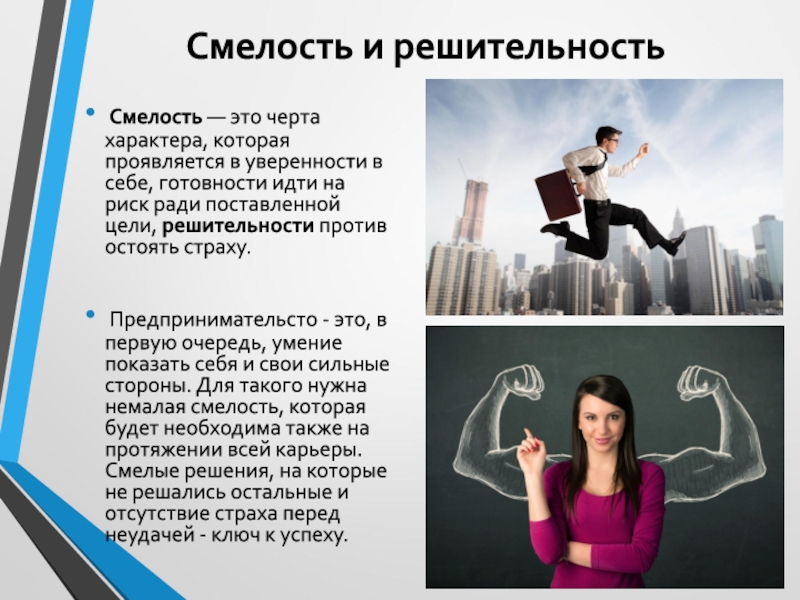 в себе, готовности идти на риск ради поставленной цели, решительности противостоять страху.