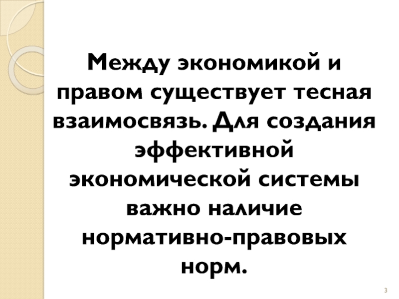 Слайд 3Между экономикой и правом существует тесная взаимосвязь. Для создания эффективной