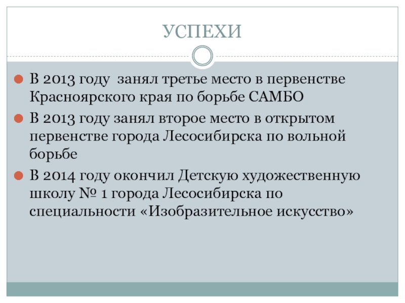 С 2007 года обучался в МБОУ ДОД «ЛДХШ № 1» города Лесосибирска