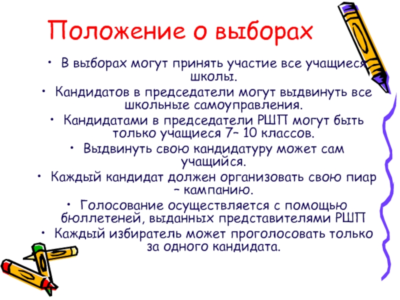 могут быть только учащиеся 7– 10 классов.Выдвинуть свою кандидатуру может сам учащийся.