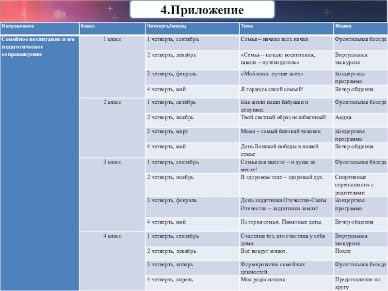 4 четверть: вечер общения «История семьи. Памятные даты»