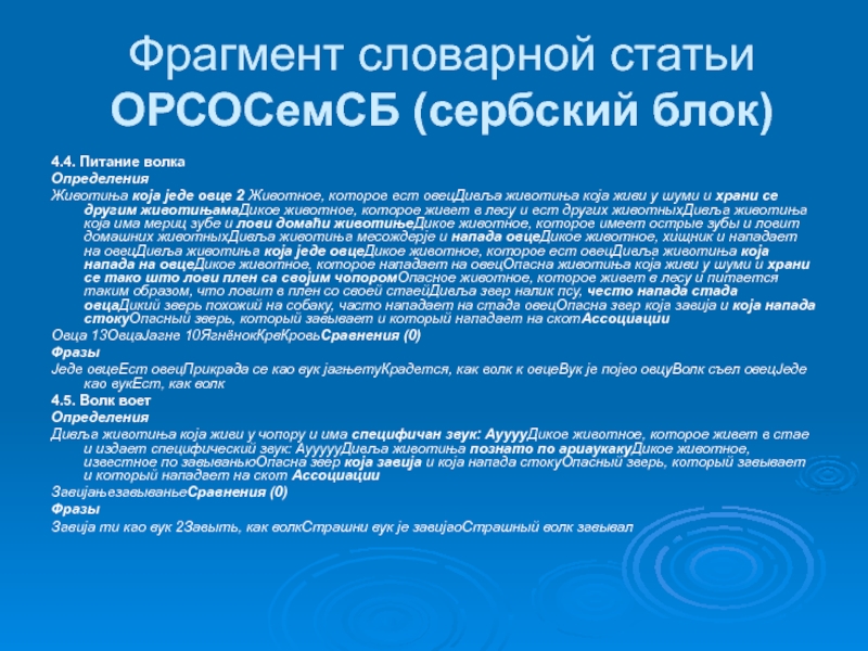 Слайд 65Фрагмент словарной статьи ОРСОСемСБ (сербский блок)