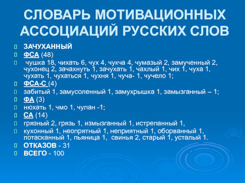 Слайд 70СЛОВАРЬ МОТИВАЦИОННЫХ АССОЦИАЦИЙ РУССКИХ СЛОВ