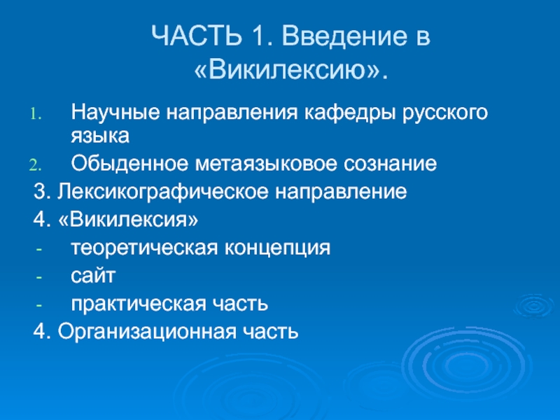 Слайд 2ЧАСТЬ 1. Введение в «Викилексию».
