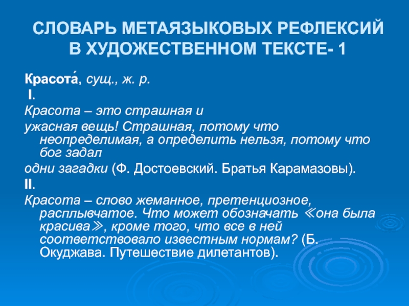Слайд 67СЛОВАРЬ МЕТАЯЗЫКОВЫХ РЕФЛЕКСИЙ В ХУДОЖЕСТВЕННОМ ТЕКСТЕ- 1