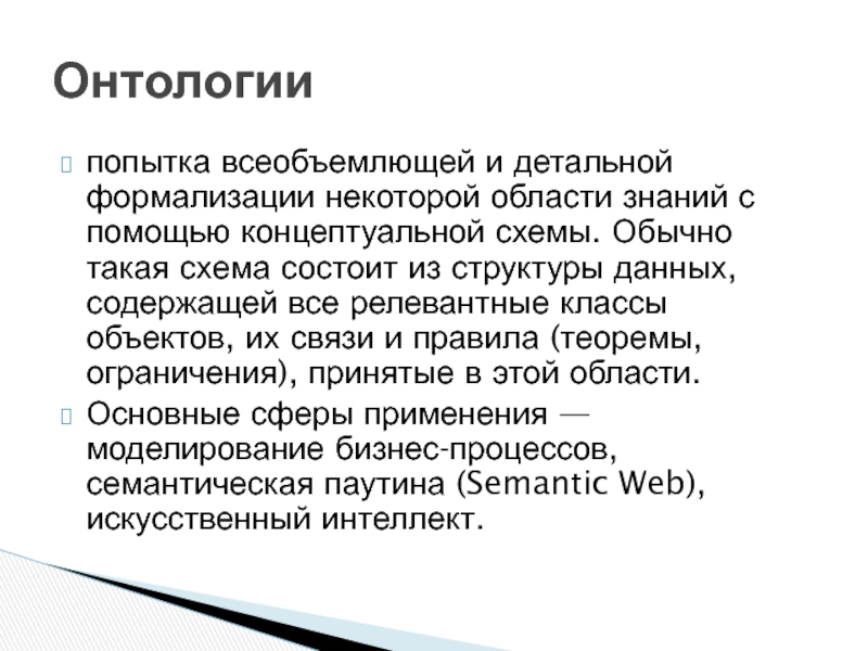 термином «представление знаний» чаще всего подразумеваются способы представления знаний, ориентированные на автоматическую обработку, и, в частности, представления, состоящие из явных объектов и из суждений или утверждений о них. Представление знаний в подобной явной форме позволяет компьютерам делать дедуктивные выводы из ранее сохранённого знания.Задача представления знаний