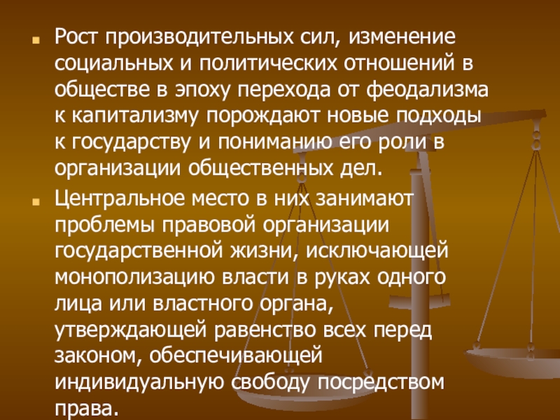 Слайд 5В период начавшегося разложения феодализма идеи правовой государственности с позиций