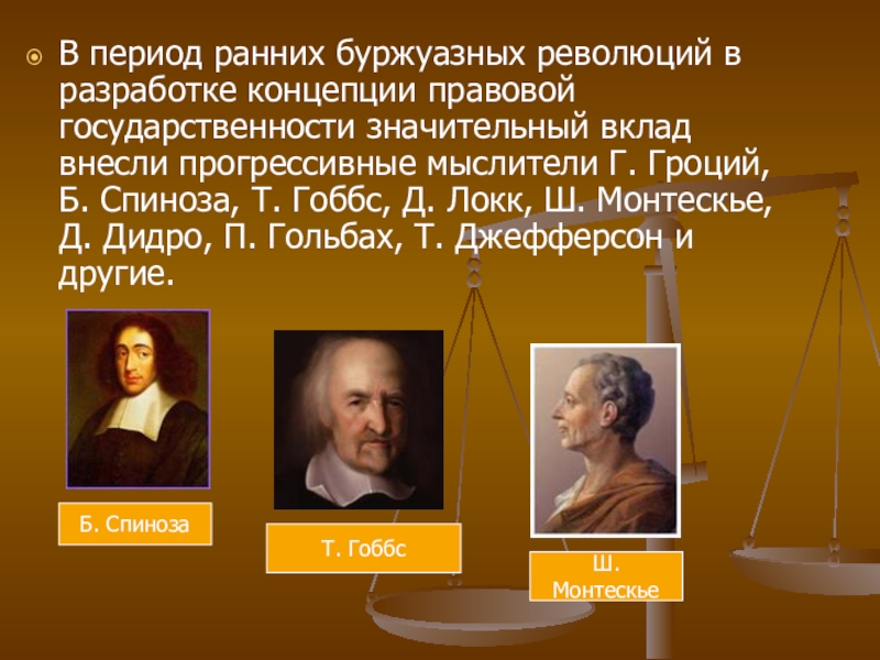 Слайд 6В период ранних буржуазных революций в разработке концепции правовой государственности