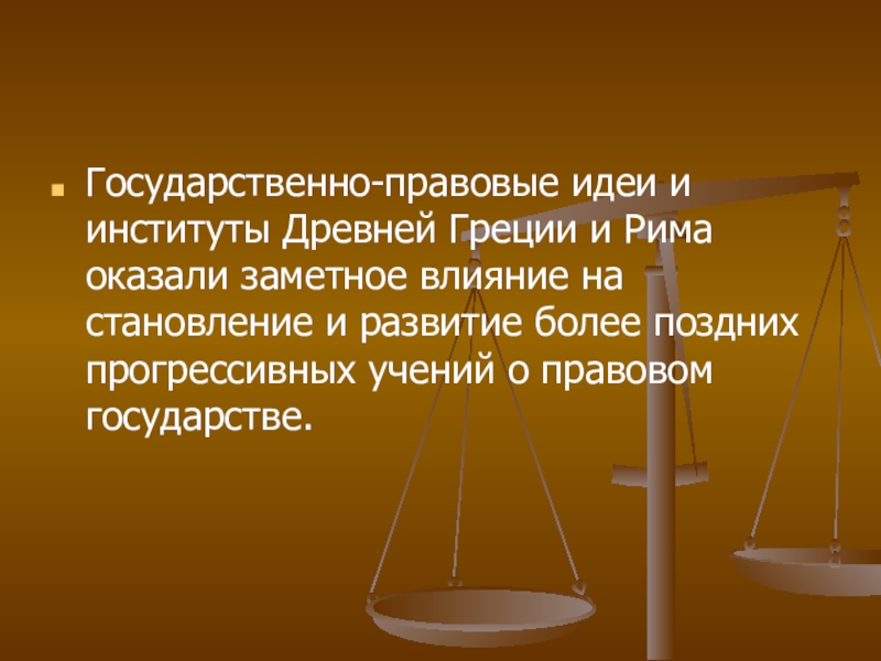 Слайд 3Государственно-правовые идеи и институты Древней Греции и Рима оказали заметное