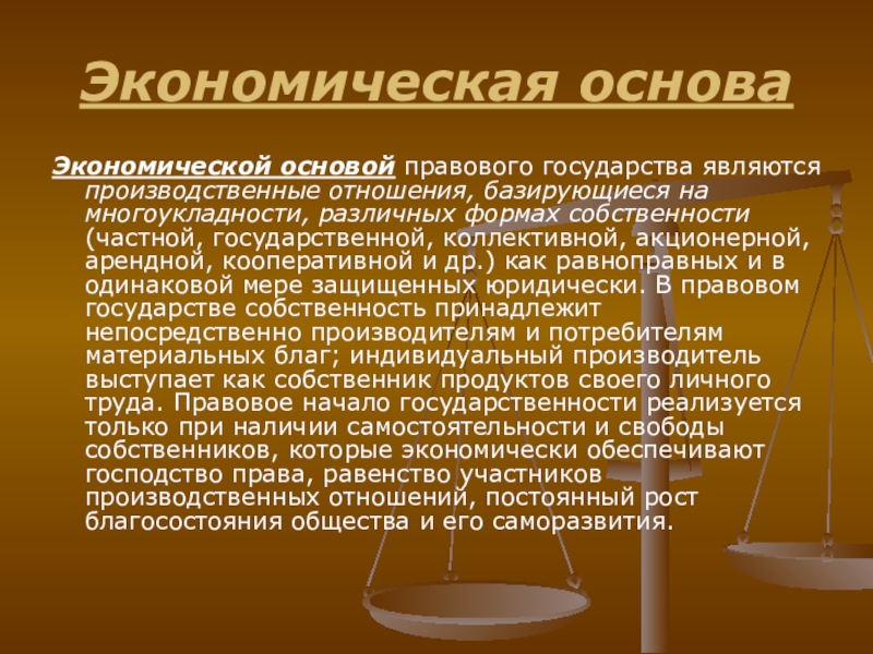 Экономической основой правового государства являются производственные отношения, базирующиеся на