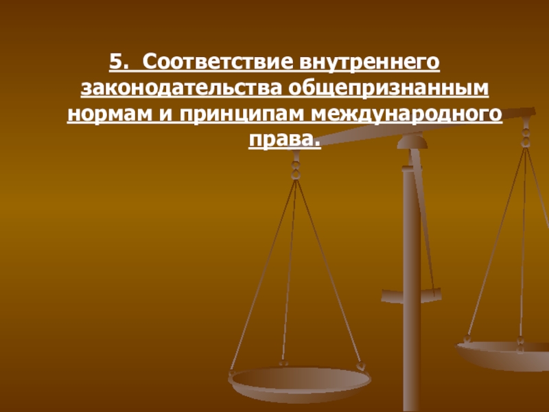 Слайд 185. Соответствие внутреннего законодательства общепризнанным нормам и принципам международного права.