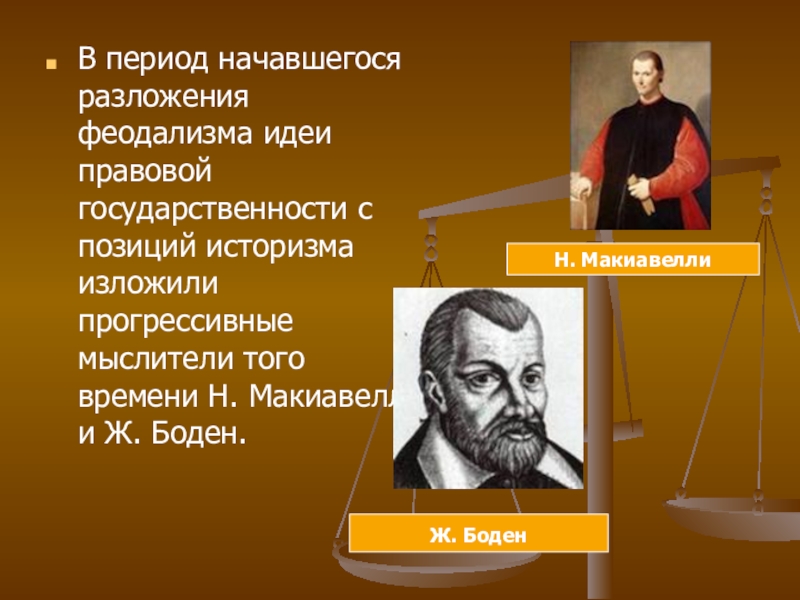 историзма изложили прогрессивные мыслители того времени Н. Макиавелли и Ж.