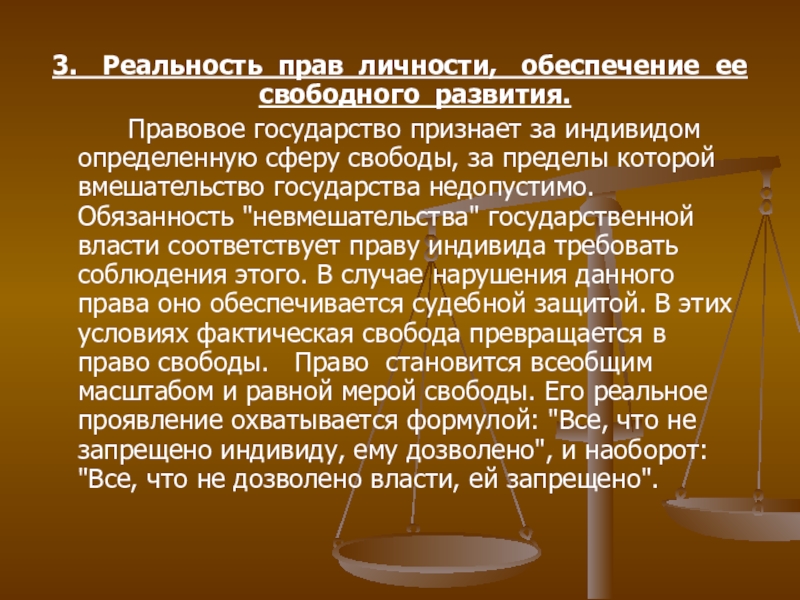 Слайд 163. Реальность прав личности, обеспечение ее свободного развития.