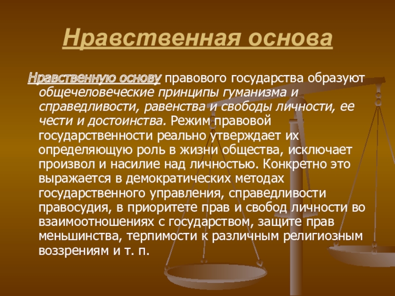 Нравственную основу правового государства образуют общечеловеческие принципы гуманизма