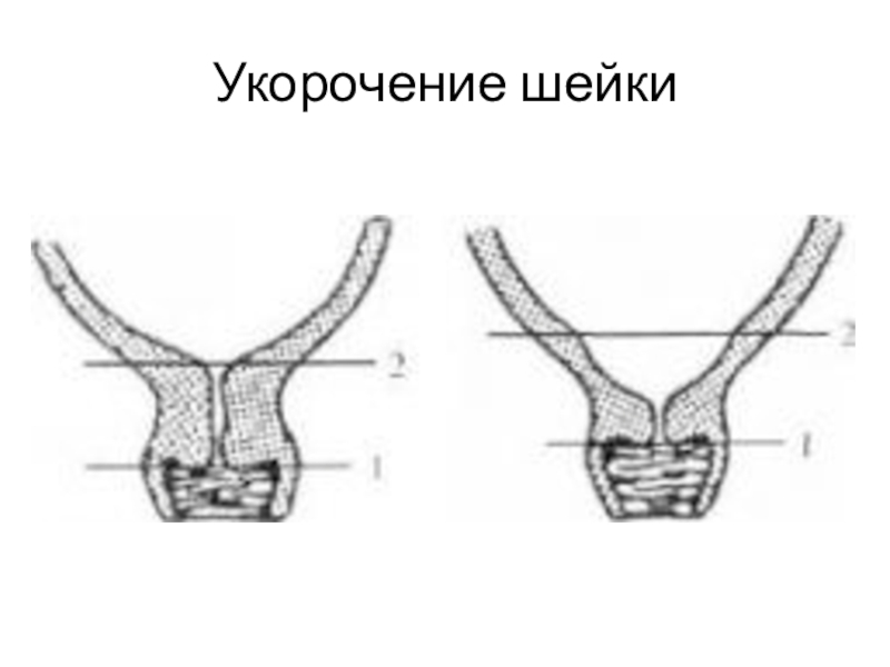 Разница между длиной цервикального канала и влагалищной частью шейки матки более 1 см, стенка влагалищной части толстая (до 1,5 см)