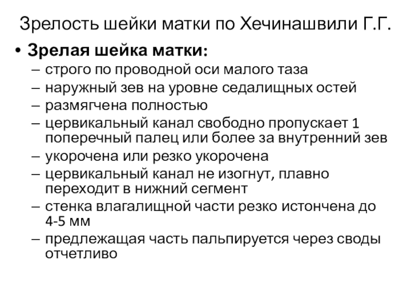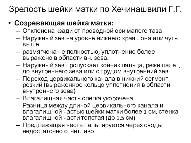 Слайд 4Зрелость шейки матки по Хечинашвили Г.Г.
