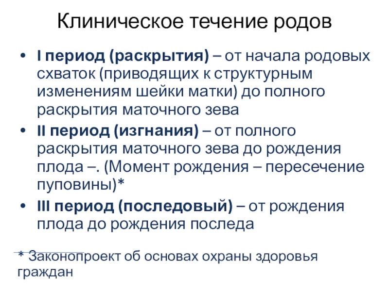 II период (изгнания) – от полного раскрытия маточного зева до рождения плода –. (Момент рождения – пересечение пуповины)*