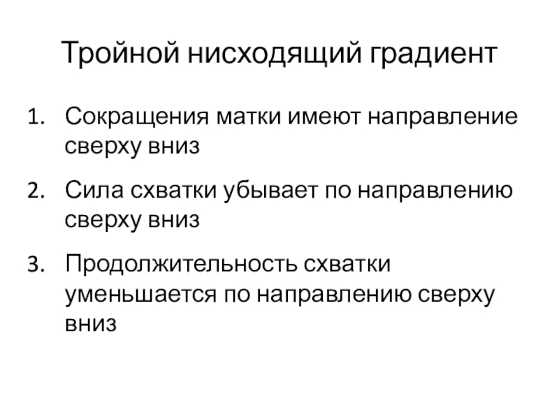 Продолжительность схватки уменьшается по направлению сверху вниз