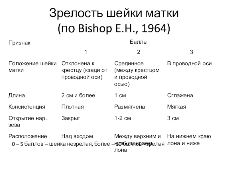 Слайд 5Зрелость шейки матки по Хечинашвили Г.Г.