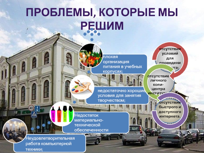 студенты не удовлетворены организацией питания в учебных корпусах;