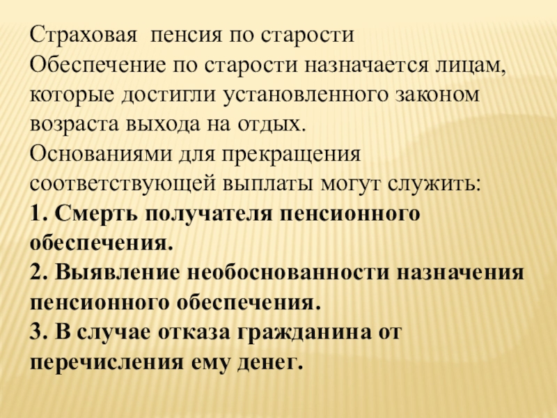 прекращения выплаты страховой пенсии. Работу выполнила студентка группы ЗПБ 39.03.02.-31Попова Евгения АлексеевнаПроверил: старший преподаватель Ефимова Н.Н.