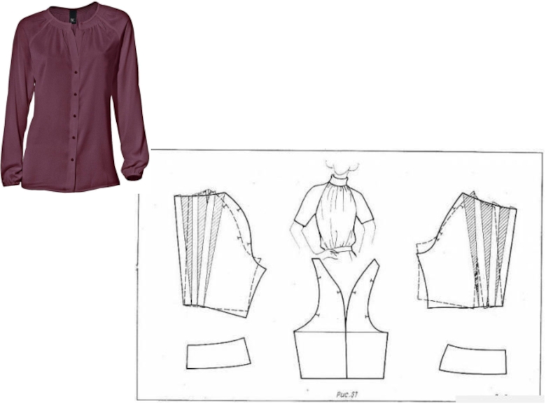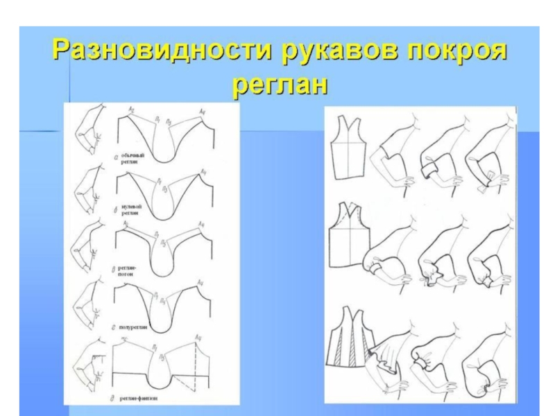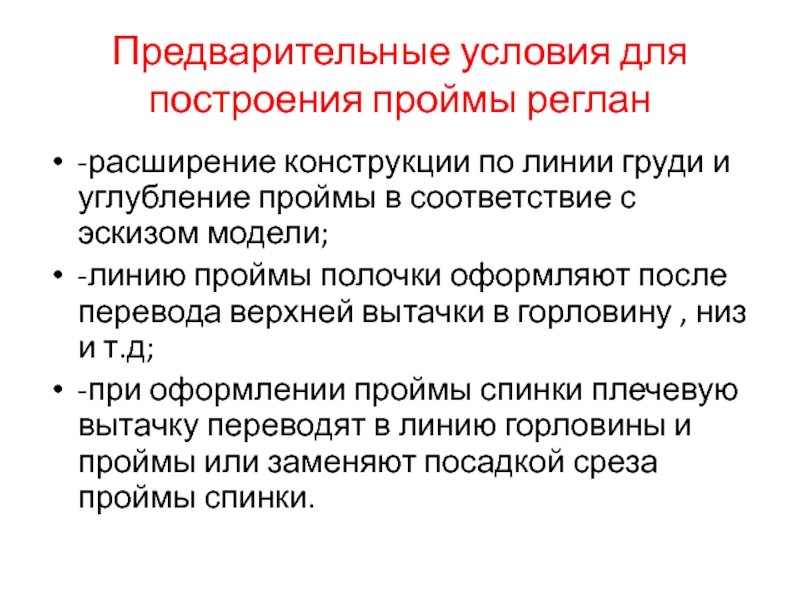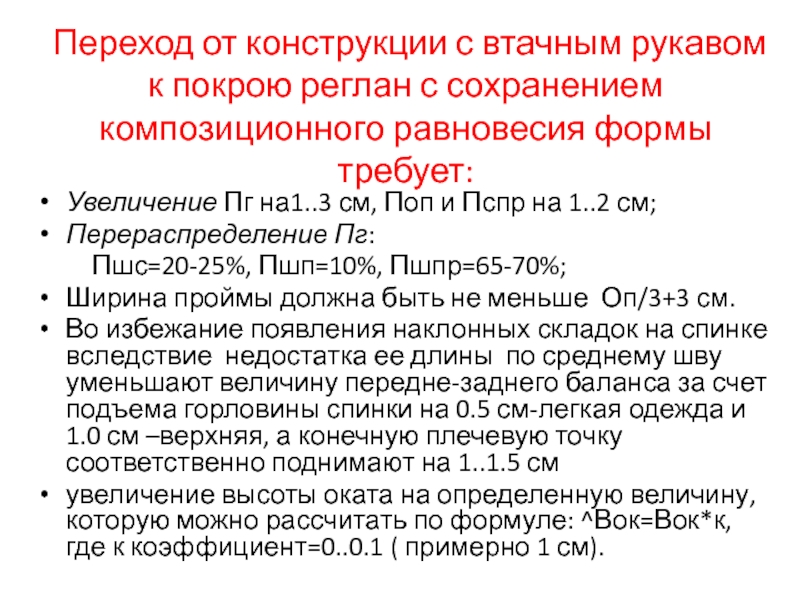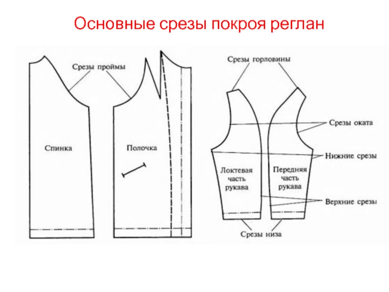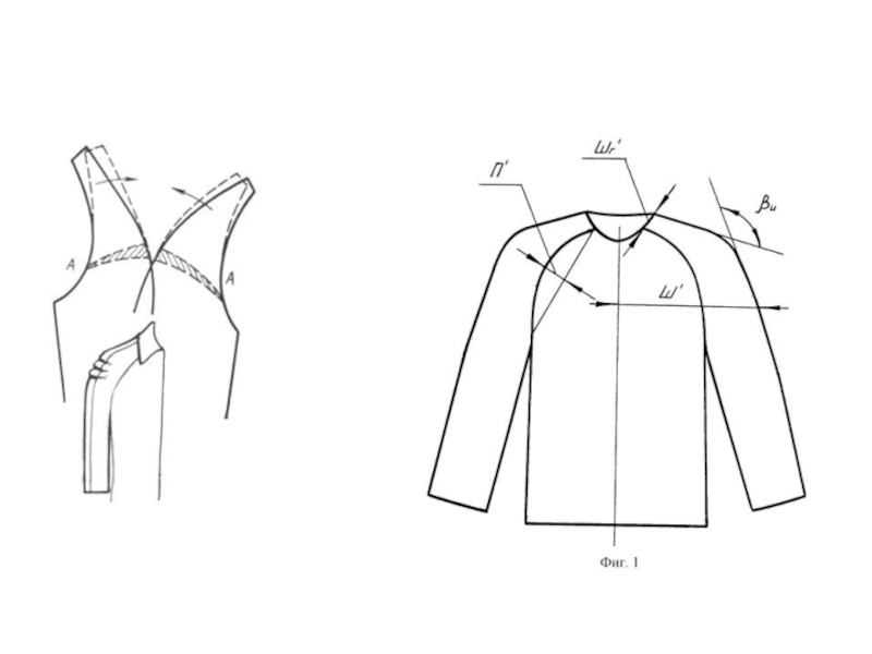 Слайд 1Преобразование базовой основы с втачным рукавом в покрой реглан.