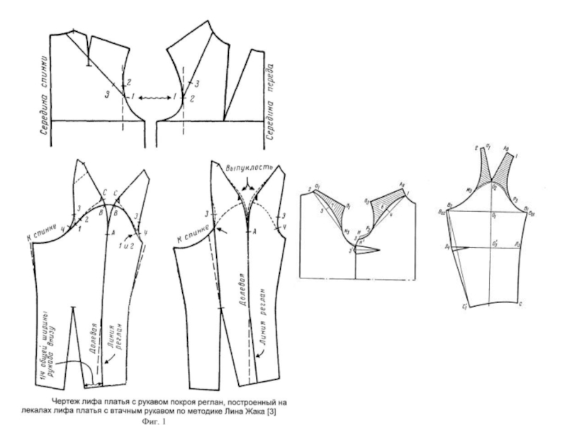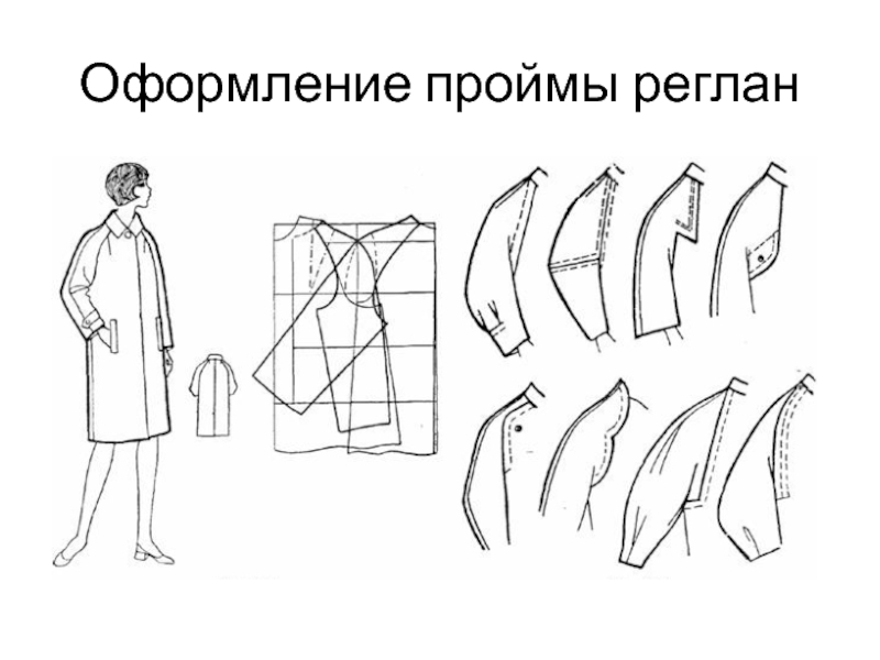 Слайд 15Переход от конструкции с втачным рукавом к покрою реглан с