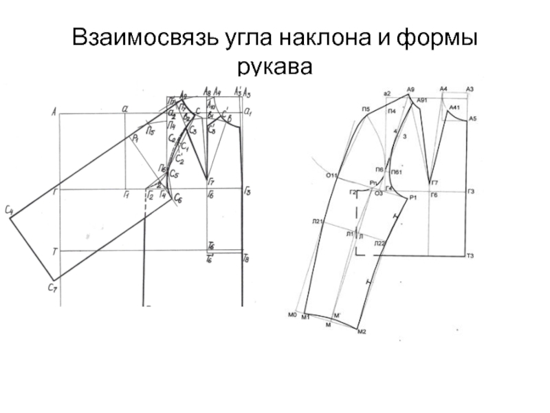 Слайд 12Взаимосвязь угла наклона и формы рукава