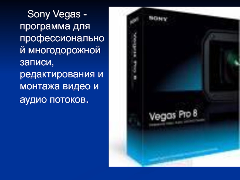 Слайд 18 Sony Vegas - программа для профессиональной многодорожной