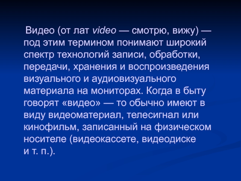 Слайд 2 Видео (от лат video — смотрю, вижу) — под этим термином