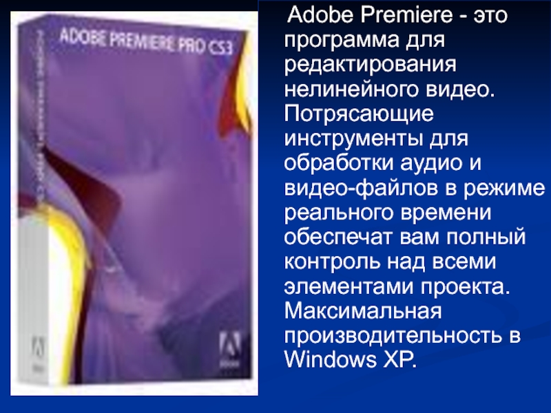 Слайд 16 Adobe Premiere - это программа для редактирования нелинейного