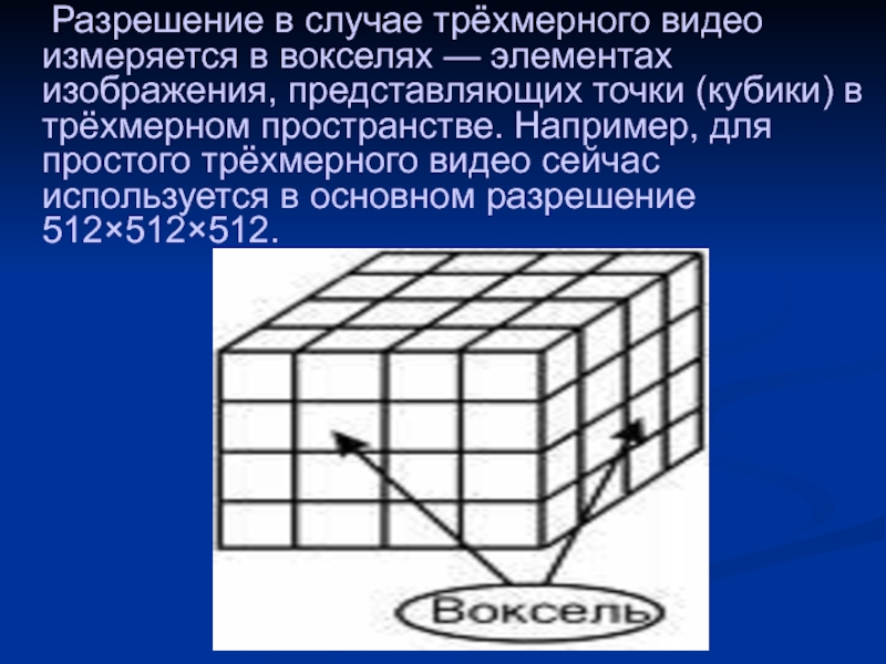 Слайд 4 Разрешение в случае трёхмерного видео измеряется в