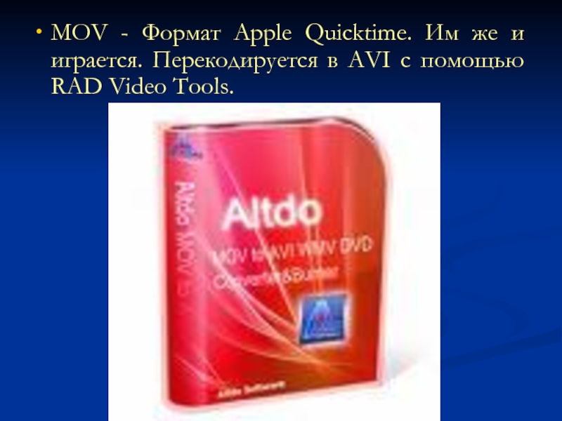 Слайд 11MOV - Формат Apple Quicktime. Им же и играется. Перекодируется