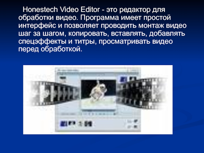 Слайд 19 Honestech Video Editor - это редактор для