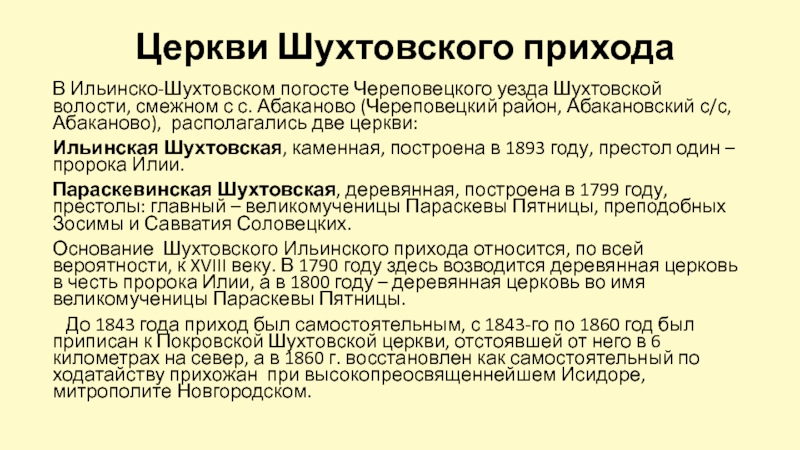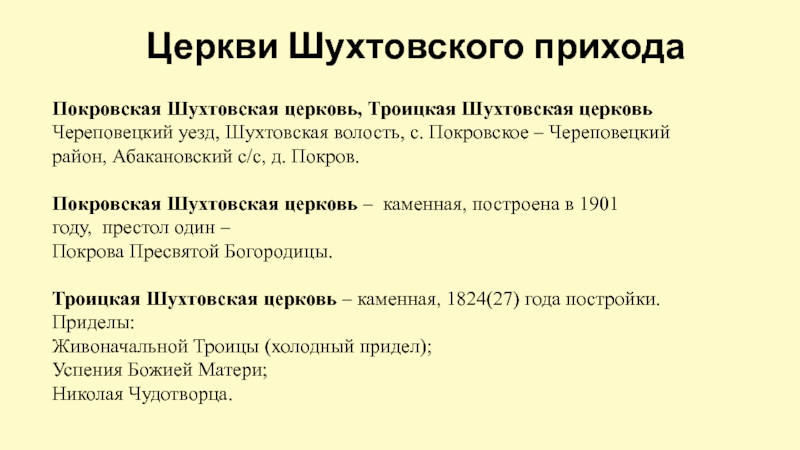 Слайд 68Церкви Шухтовского прихода