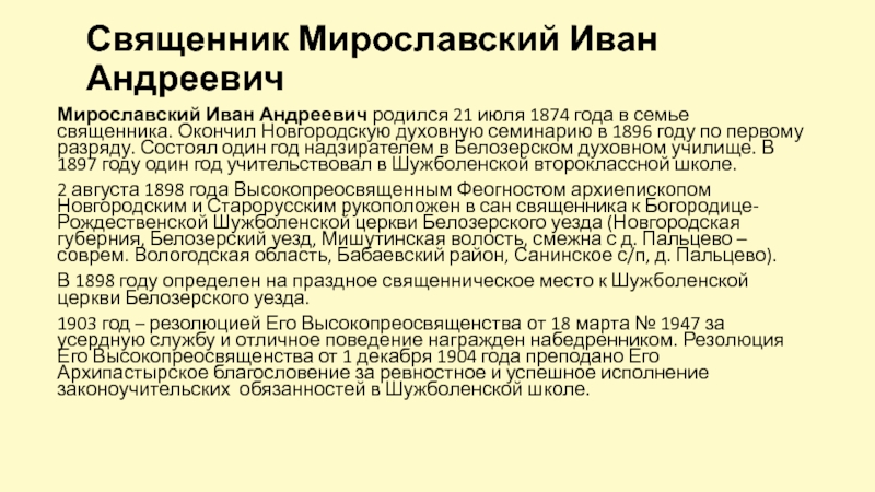 Слайд 48Священник Мирославский Иван Андреевич