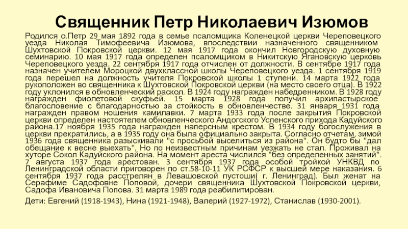 Слайд 52Священник Петр Николаевич Изюмов