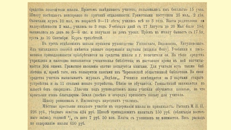 первому разряду. Состоял один год надзирателем в Белозерском духовном училище. В 1897 году один год учительствовал в Шужболенской второклассной школе.