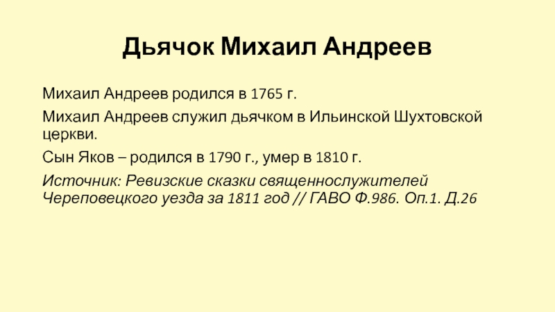 Михаил Андреев родился в 1765 г.