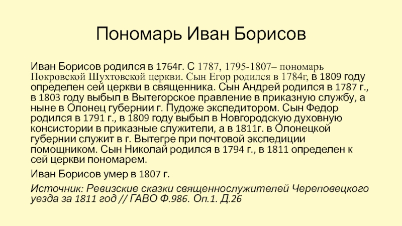1787, 1795-1807– пономарь Иван Борисов (~1764-1807)