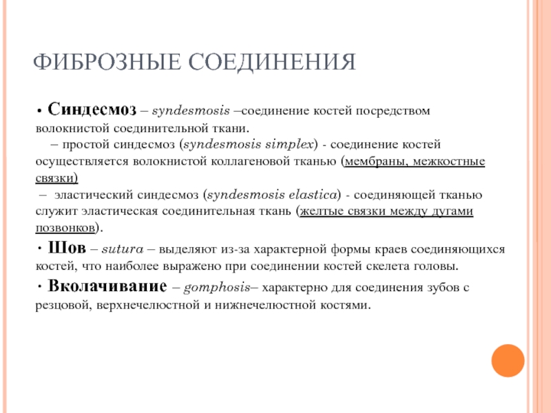 Слайд 5ФИБРОЗНЫЕ СОЕДИНЕНИЯ