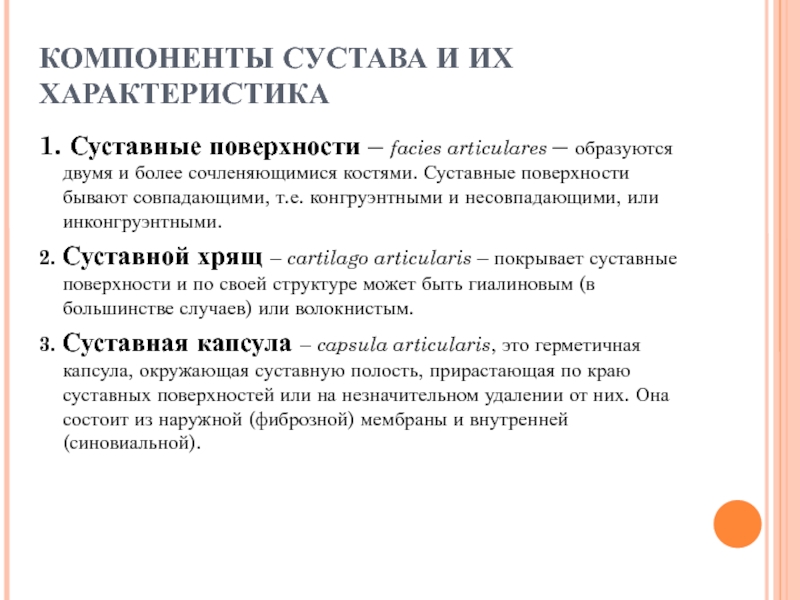 Слайд 10КОМПОНЕНТЫ СУСТАВА И ИХ ХАРАКТЕРИСТИКА