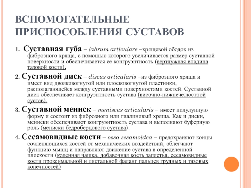 Слайд 12ВСПОМОГАТЕЛЬНЫЕ ПРИСПОСОБЛЕНИЯ СУСТАВОВ
