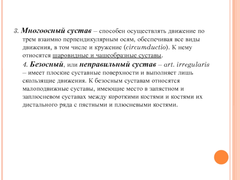 Слайд 203. Многоосный сустав – способен осуществлять движение по трем взаимно