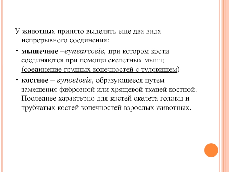 Слайд 8У животных принято выделять еще два вида непрерывного соединения: