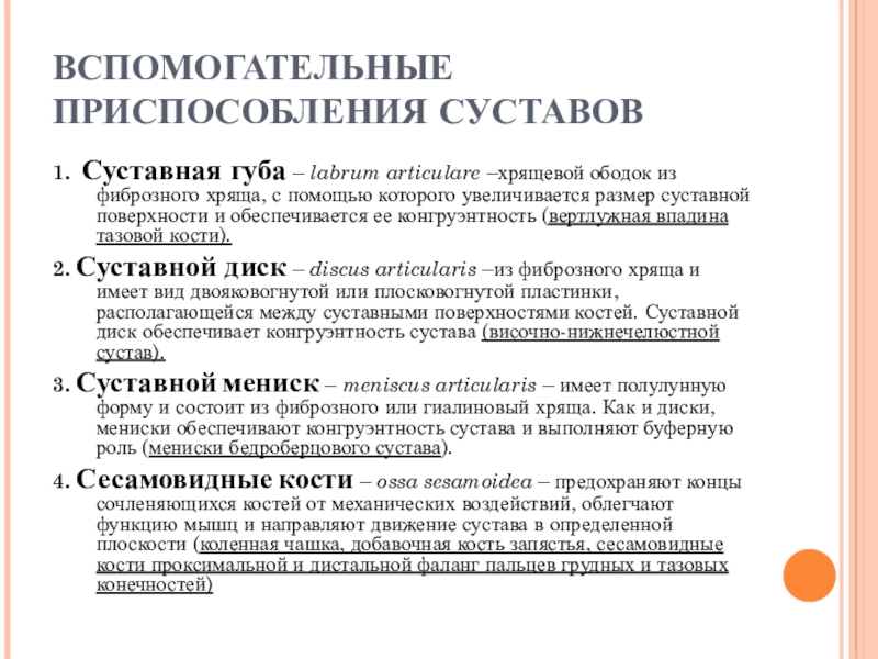 Слайд 12ВСПОМОГАТЕЛЬНЫЕ ПРИСПОСОБЛЕНИЯ СУСТАВОВ