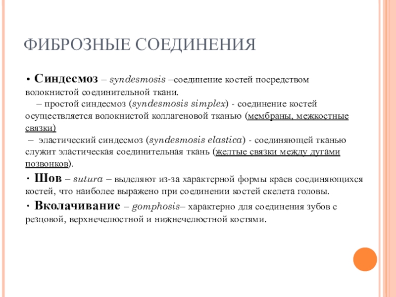 Слайд 5ФИБРОЗНЫЕ СОЕДИНЕНИЯ