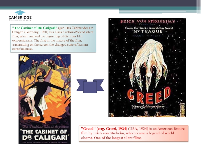 "Greed" (eng. Greed, 1924) (USA, 1924) is an American feature film by Erich von Stroheim, who became a legend of world cinema. One of the longest silent films.